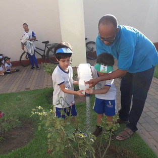 A turma do Maternal 3, em consonância com o material didático do Sistema Positivo de Ensino, tiveram uma semana voltada para o conhecimento das plantas. Após várias atividades em sala, com o material didático, vídeos e atividades lúdicas, os alunos foram para trabalho de campo conhecer de perto um jardim e uma horta, na casa das Irmãs. Após essa atividade, os alunos puderam, com a ajuda de um jardineiro profissional, plantar algumas mudas na Sala Ecológica.