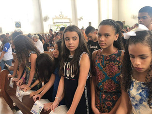 A Comunidade Escolar celebrou o encerramento do ano letivo, junto a Comunidade Eclesial Santo Antônio, a missa presidida pelo Padre Renato Diniz, em ação de graças pela conclusão da Educação Infantil, Ensino Fundamental e Ensino Médio.