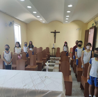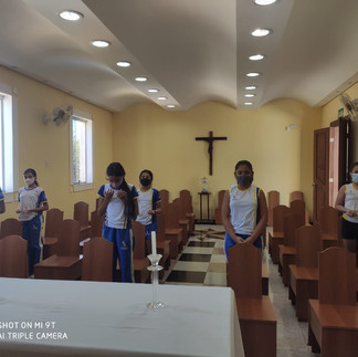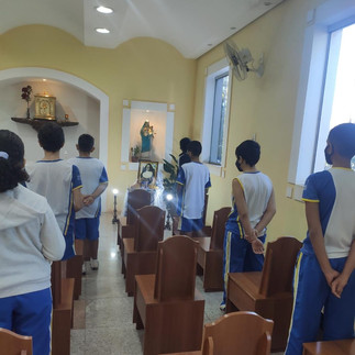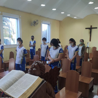 Após o retorno com as atividades presencias, o Setor de Pastoral retomou os momentos orantes na capela, com os alunos. Momento de fé, espiritualidade e muita devoção com os alunos no presencial e com a participação dos alunos que estão no remoto.